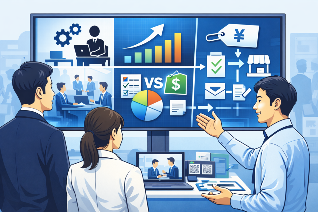 用途・特徴・比較・価格帯・導入手順を整理し、1本で説明が終わる動画を用意することで、展示会の成果は大きく変わります。